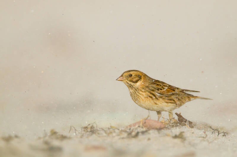 On the other side of the beach a Lapland Bunting is reported and we rush ourselves to there. Lapland Buntings breed on the tundra near the arctic circle and probably haven't seen any people before. the bird is very cooperative but the wind often blows the sand in our faces when we lie down to get some eye-level photos. Despite the strong wind it's a nice start of the trip and when the light is fading we head back to our apartments.
